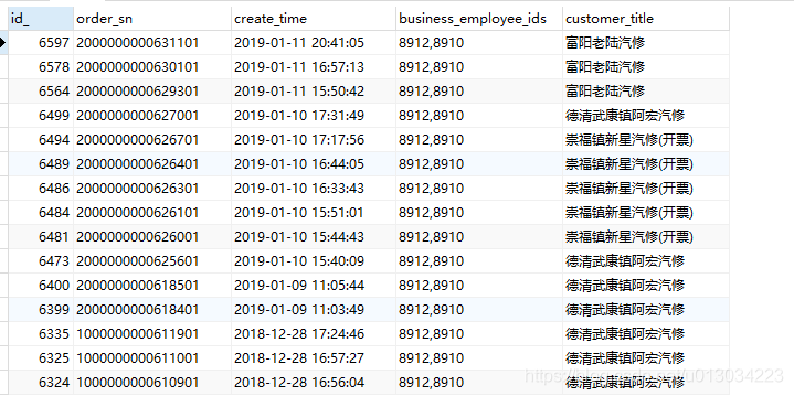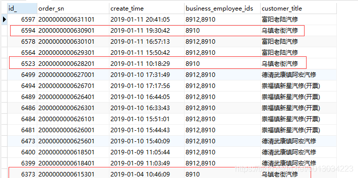 上面结果截图中,框出的三条订单,id为6594,6523,6373是只有员工编号为8910能处理的,我们将上面的SQL员工编号改为8912,则此三条订单应该是不在结果范围内的, 从而验证使用此函数查询是否可行。