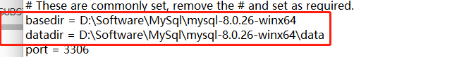 datadir = D:\Software\MySql\mysql-8.0.26-winx64\data
