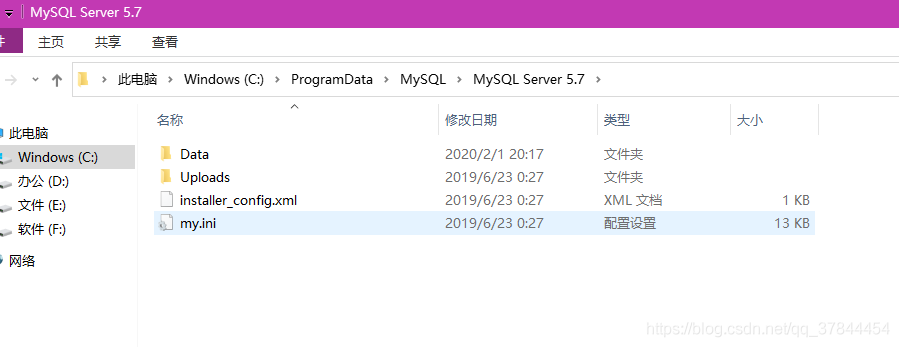 打开MySQLServer那个文件夹里面就会有my.ini文件了。