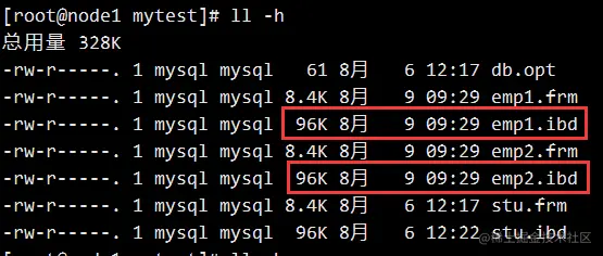 -rw-r—–. 1 mysql mysql 304K 8月 9 09:37 emp2.ibd