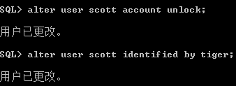 账户登录后输入“alter user scott account unlock;”命令来给scott账户解锁, 解锁完成后要给scott账户设置密码,可以输入“alter user scott identified by tiger;”命令将scott的密码修改为tiger,然后就可以通过scott/tiger登录了!