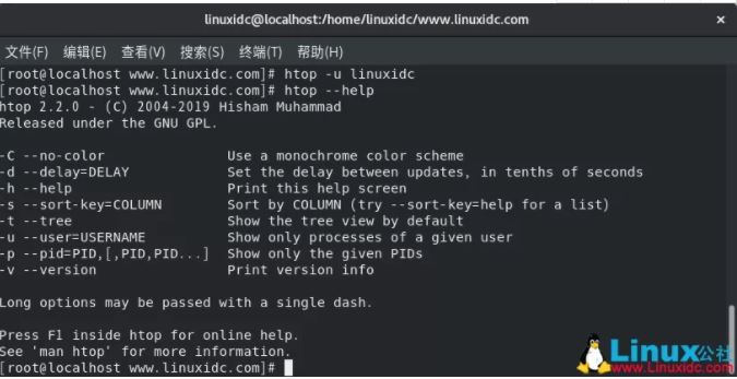 安装完成后,可以通过运行命令找到有关htop的更多信息。