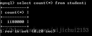 具体查了多少数据呢?使用select count(*) from student;查看。