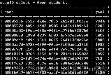 测试完成后检查该student表,输入select * from student; 可以看到源源不断的数据的输出,插入的表项太多了。