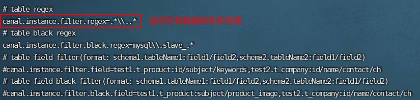 5. 多个规则组合使用:canal\\..*,mysql.test1,mysql.test2 (逗号分隔)