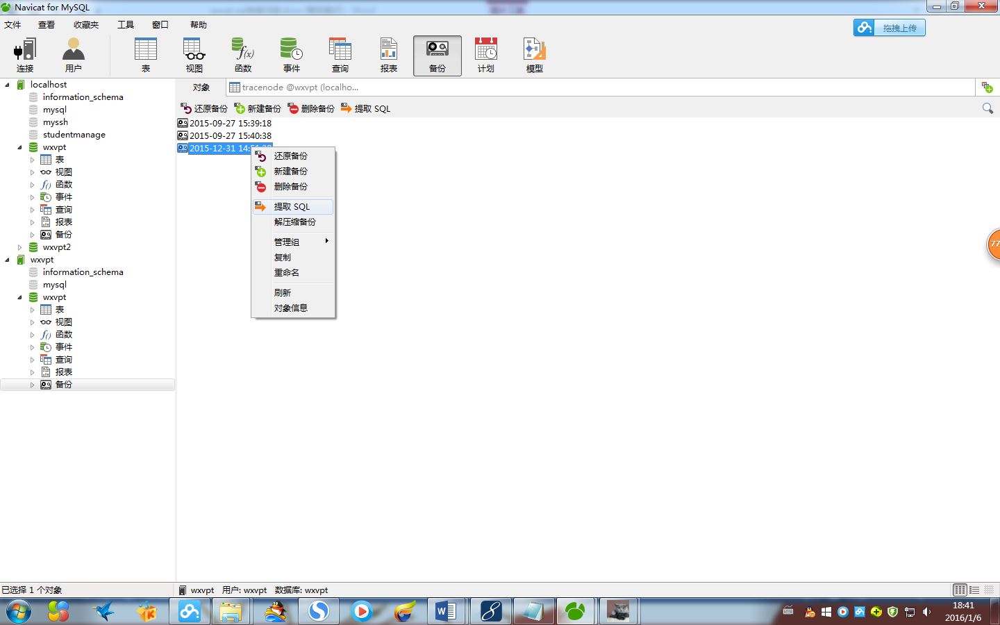 二、从备份中导出.sql再导入到本地数据库中