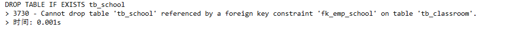 一: 先删除子表 tb_classroom ,再删除 父表tb_school,可参考 1 方法,这里不再赘述