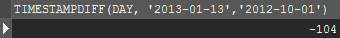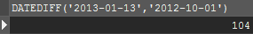SELECT DATEDIFF(‘2013-01-13′,’2012-10-01’);