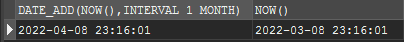 SELECT DATE_ADD(NOW(),INTERVAL 1 MONTH), NOW();
