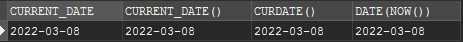 SELECT CURRENT_DATE,CURRENT_DATE(),CURDATE(),DATE(NOW());