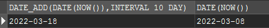 SELECT DATE_ADD(DATE(NOW()),INTERVAL 10 DAY), DATE(NOW());
