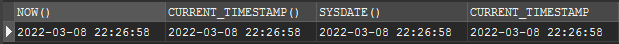 SELECT NOW(),CURRENT_TIMESTAMP(),SYSDATE(),CURRENT_TIMESTAMP;