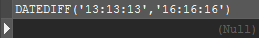 SELECT DATEDIFF(’13:13:13′,’16:16:16′);