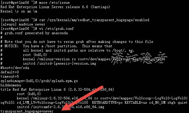 [root@getlnx06 ~]# echo never > /sys/kernel/mm/redhat_transparent_hugepage/enabled