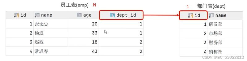 例如,一个员工对应一个部门,一个部门可以对应多个员工