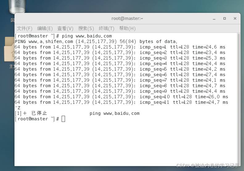 首先得查看一下自己的Linux系统是否链接网络,大家可以打开Linux系统的终端来ping一下百度的网址查看一下