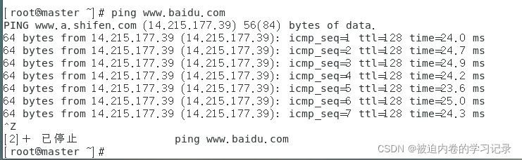 发现没有问题后可以ping一下百度看看是否连接上网络