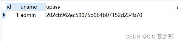 select * from user where uname=’admin’ and upass=MD5(‘123’)