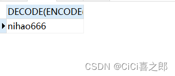 select DECODE(ENCODE(‘nihao666′,’nice’),’nice’);