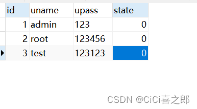 insert into user(uname,upass) values (‘tom’,’1001′);