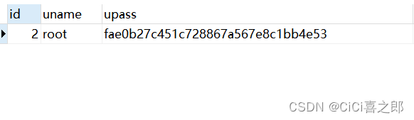 select * from user where uname=’root’ and upass=MD5(‘666’)
