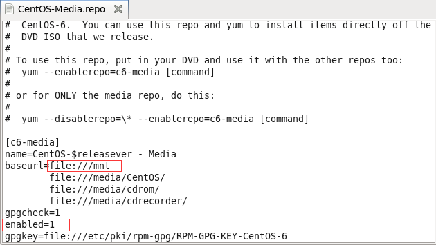 4.修改yum(下载)文件: /etc/yum.repos.d/CentOS-Media.repo