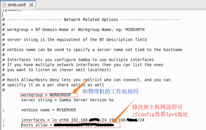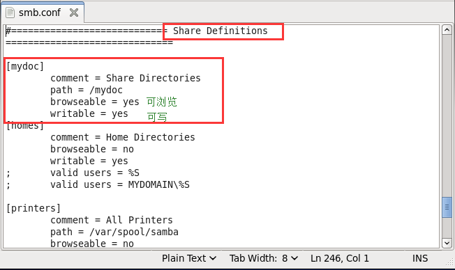 配置文件:/etc/samba/smb.conf