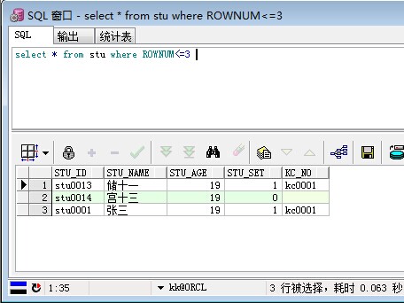 SELECT STU.STU_NAME, STU.STU_AGE, KC.KC_NAME FROM STU LEFT JOIN KC ON STU.KC_NO = KC.KC_NO ORDER BY STU.STU_ID