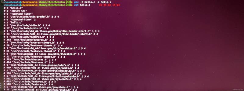 $ gcc -E (源文件名) -o (预处理文件名)