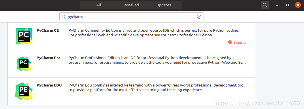 方法二:Ubuntu的Software里面搜索 Pycharm CE 直接 Install即可