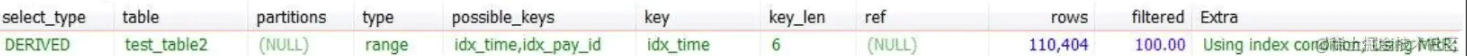 - 5. range:只检索给定范围的行,使用一个索引来选择行。key列显示使用了那个索引。一般就是在where语句中出现了bettween、<、>、in等的查询。这种索引列上的范围扫描比全索引扫描要好。只需要开始于某个点,结束于另一个点,不用扫描全部索引