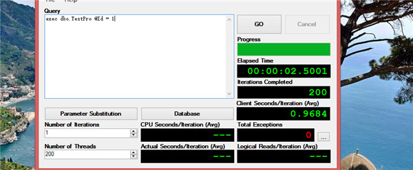 我们统一创建存储过程通过来SQLQueryStress来测试并发情况,我们来看第一种情况。