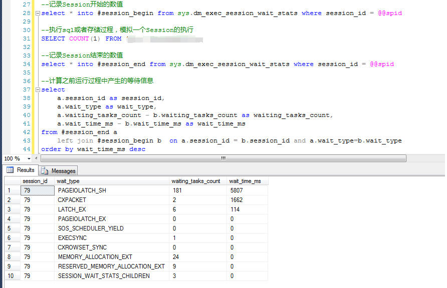 但是上述时间的信息已经细化到Session级别了,比sys.dm_os_wait_stats 中的等待信息更有参考价值。