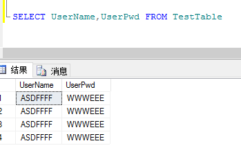 INSERT INTO TestTable (UserName,UserPwd) VALUES (‘ASDFFFF’,’WWWEEE’)