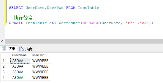 UPDATE TestTable SET UserName=(REPLACE(UserName,'FFFF','AA'))