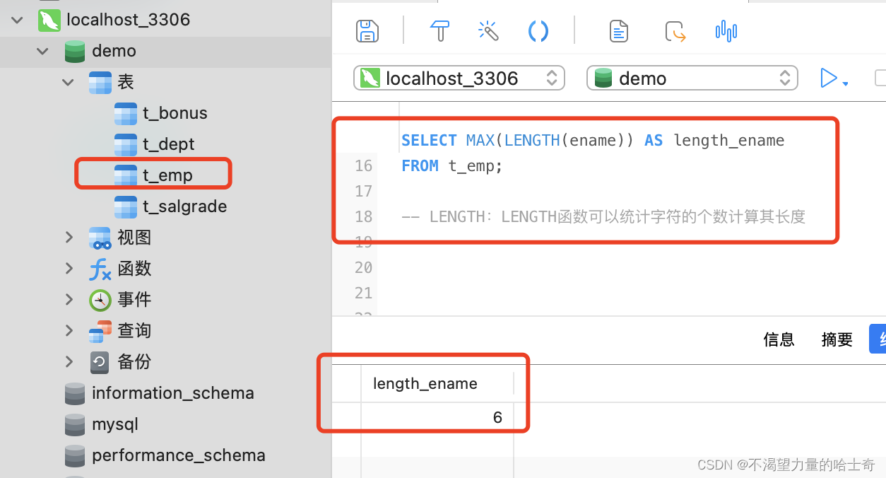 SQL 语句演示 MAX函数 案例(查询 员工姓名 最长的名字的长度)