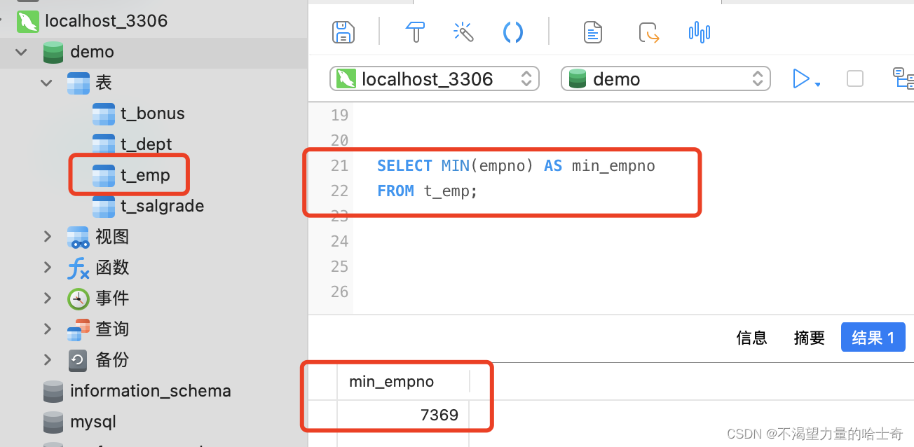 SQL语句演示 MIN函数 案例(查询 员工编号最小 的员工)