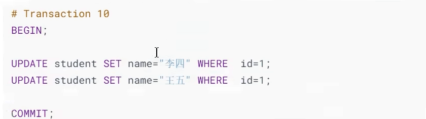 假设现在有一个使用READ COMMITED隔离级别的事务开始执行: