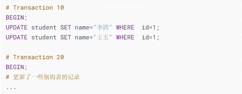 然后再到事务id为20的事务中更新一下表student中id为1的记录: