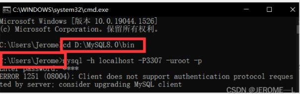 这是因为mysql8.0版本和5.0版本加密方式不一样,所以会报错