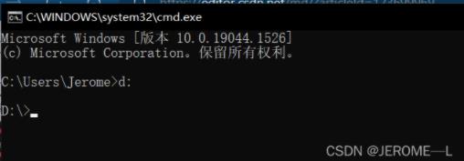 这样子是错误的,因为cd本来是切换到后面路径D盘的,我却还在C盘操作,所以我们得改操作路径,代码d:即可实现