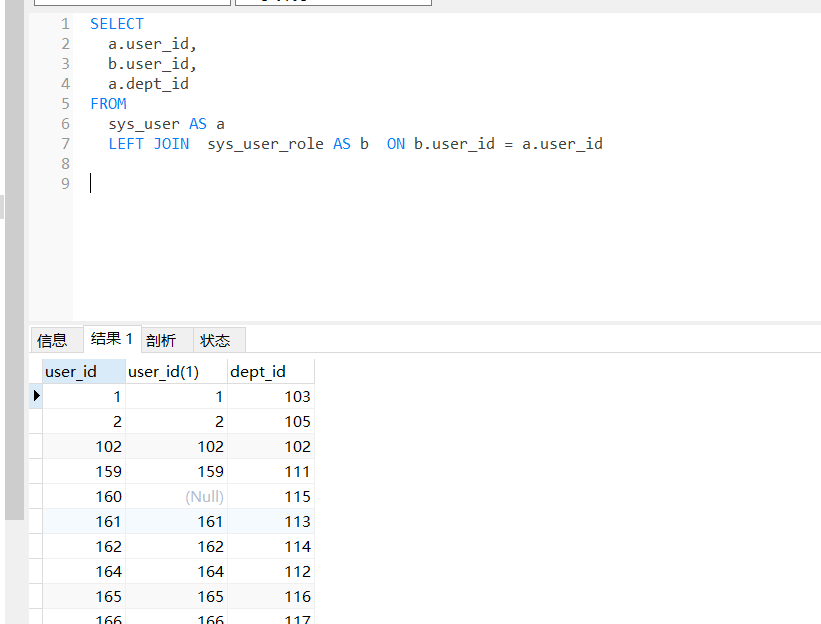 (1)左连接:返回左表中的所有数据