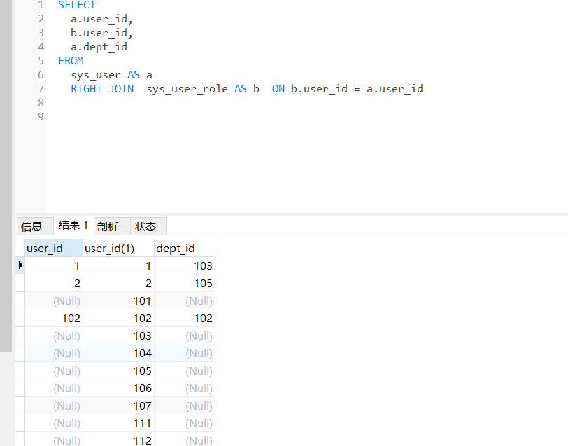 (2)右连接:返回右表中的所有数据