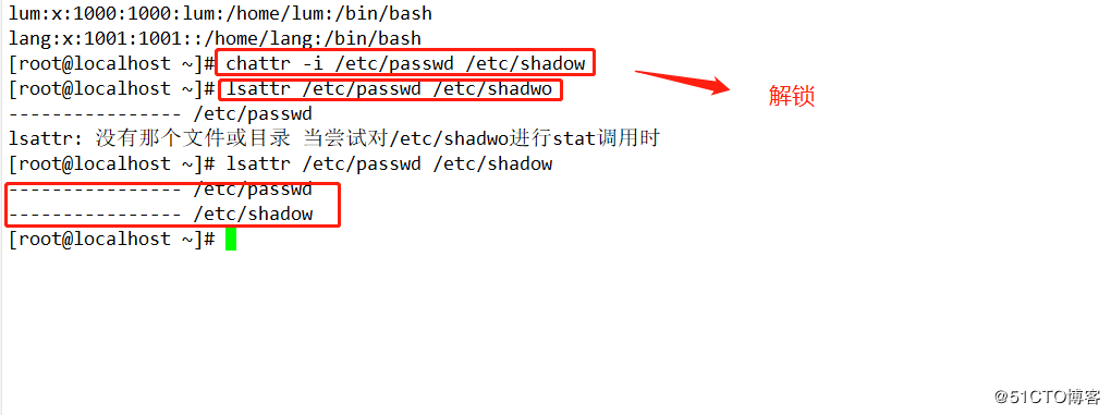对于Linux服务器中长期不用的用户账号,可以暂时将其锁定。账号配置信息放在/etc/passwd 和/etc/shadow 中,可以用chattr命令对账号进行管理