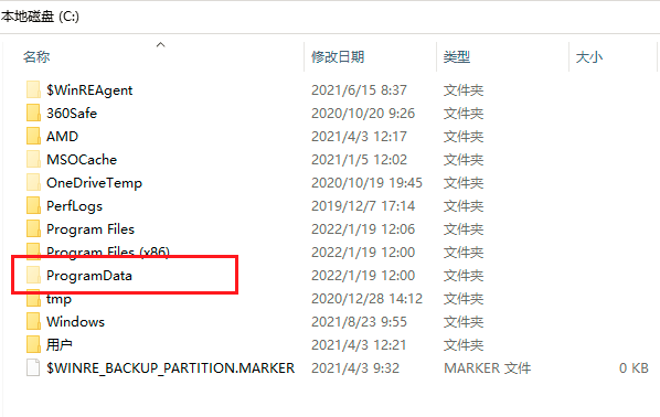 2、回到C盘会发现C盘多了一个programdata,打开它。