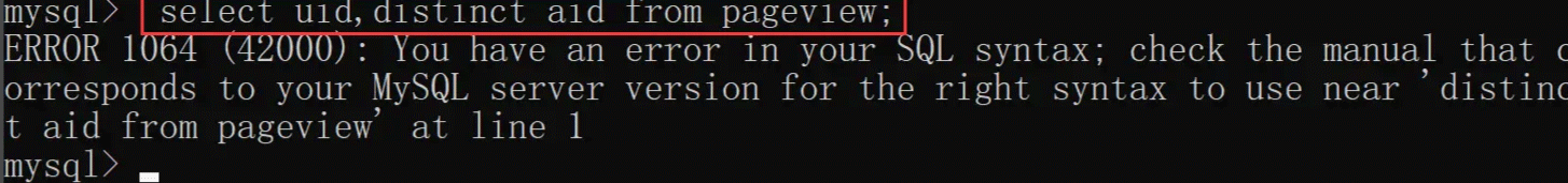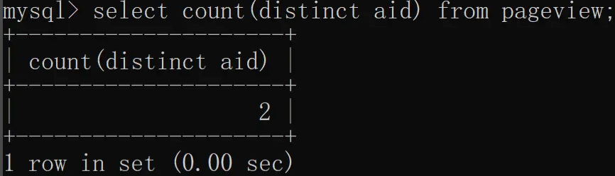 使用 distinct + 聚合函数去重,计算 aid 去重之后的总条数,具体实现如下: