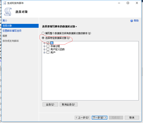 第二步、打开高版本数据库中你需要备份的数据库,将你备份的数据库相关的登录名或者用户删除。右键数据库->任务->生成脚本。在生成脚本的“选择对象”步骤选择“编写整个数据库及所有数据库对象的脚本选项”。在生成脚本的“设置脚本编写选项”的高级中选项中设置“编写USE DATABASE 脚本”和“架构限定对象名称”选项为False并将“服务器版脚本”选择为你的低版本的数据库的版本。生成脚本。