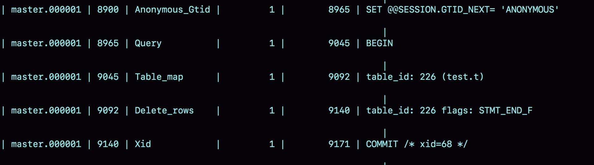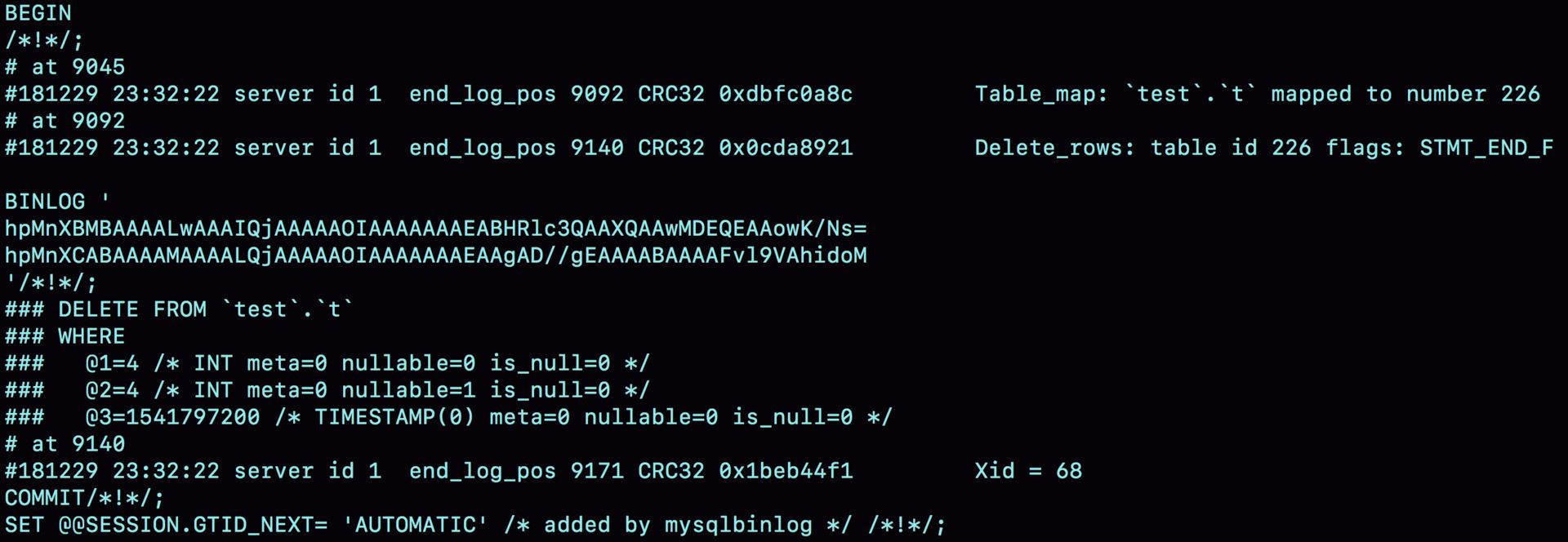 接下来,我们再用 mysqlbinlog 工具来看看: