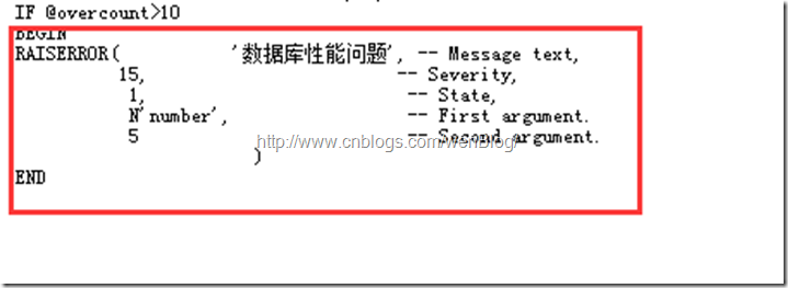 1.创建作业,核心就是在步骤中加入对指定数据的监测超过时触发通知。这里通过一个raiseerror 即可: