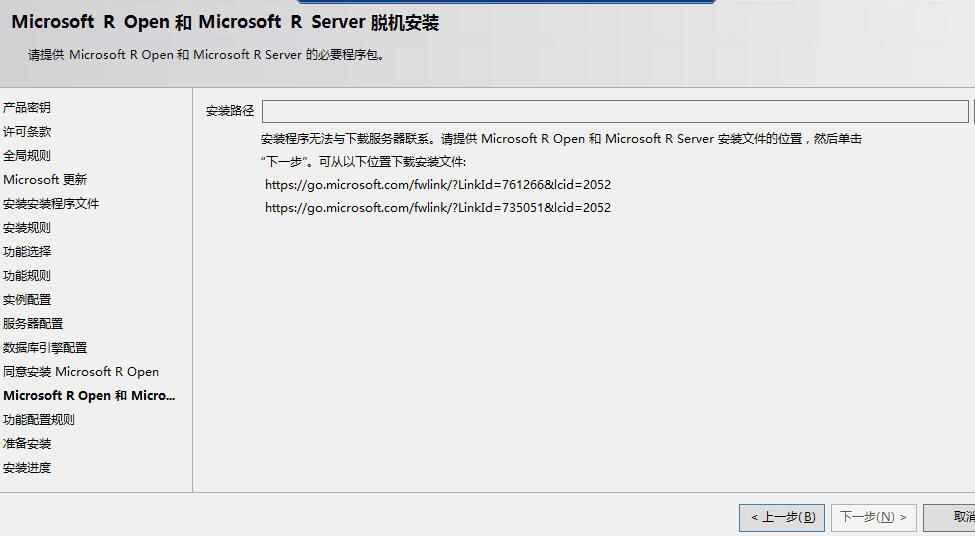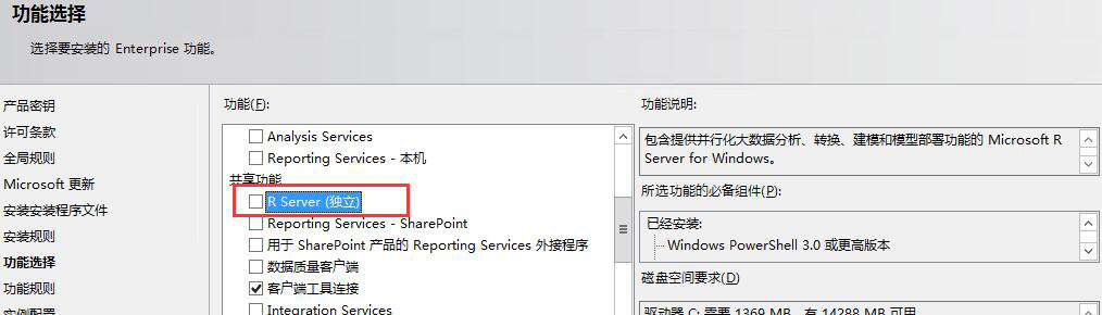 功能选择里多出来的R Server,但是R Server需要联网或者自己下载下来,这是坑爹的地方之一,它没有集成在SQL Server2016安装包里